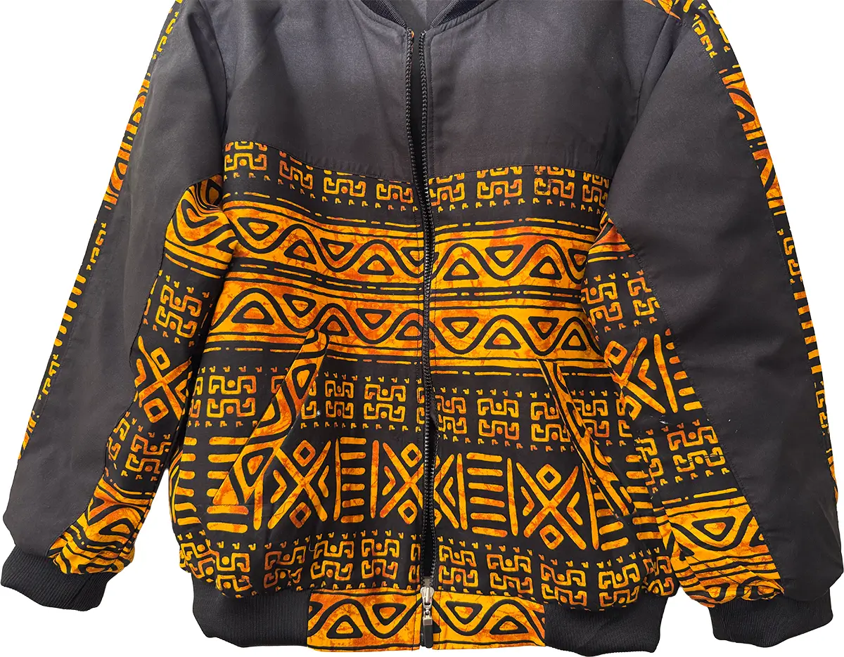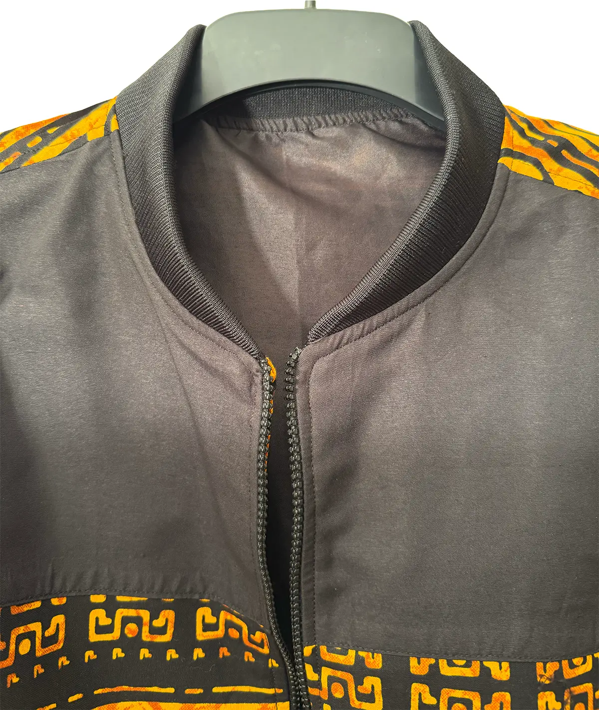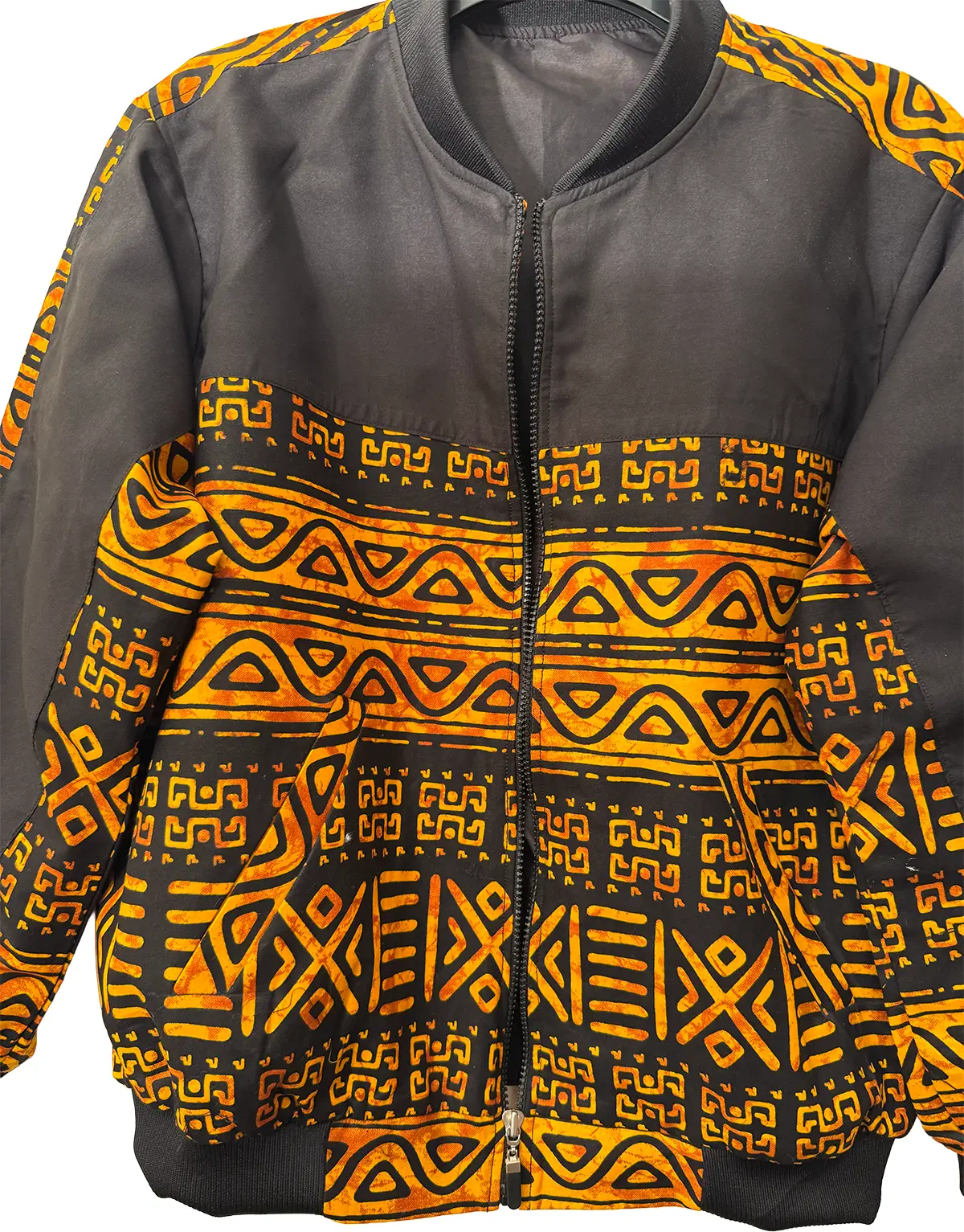Let this Nkiri Ankara Jacket tell a story about you as you wear it — it’s bold, sharp, and full of tales. The orange and yellow mudcloth pattern stands out anywhere: London, Toronto, Berlin, New York, or Lagos.